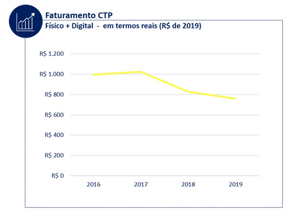 Segundo a Série Histórica da pesquisa Produção e Vendas do Setor Editorial Brasileiro¹, as editoras de livros Científicos, Técnicos e Profissionais (CTP)² registraram, em 2019, o pior resultado em mais de dez anos em que o mercado é analisado, apresentando uma queda acumulada de 41%³ em termos reais nos últimos 14 anos. Esse resultado negativo teve início em 2015 e, de lá pra cá, o subsetor registra decréscimo acumulado de 50% em termos reais.