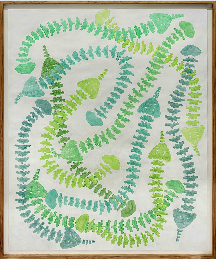 Lia Chaia intervém no espaço com uma derivação site-specific (termo usado nas artes para designar uma obra, instalação, intervenção ou projeto concebido especificamente para ocupar um determinado lugar, e apenas ele) de sua série Vértebra por vértebra, envolvendo a galeria com desenhos ósseos que evocam serpentes. Em Rompimento (1969), Vera Chaves Barcellos apresenta uma forma geométrica atravessada por uma linha orgânica de movimento sinuoso. E Renata Padovan apresenta, na série Para saber onde está pisando, um tapete bordado por artesãs pernambucanas com a imagem de satélite da nuvem de fumaça que cobriu milhões de quilômetros quadrados da América do Sul em setembro de 2022, embalando cartografia, território e memória ambiental.